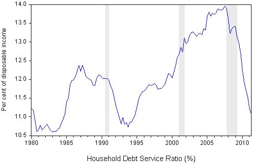 Posted by The Prince in Linkson Nov 25th, 2011 | 2 commentsIf ever there was a smoking gun chart to try to explain to the lay economic reader (and those who cling to the failed paradigm), the fundamentals behind systemic risk, the Household Debt Service Ratio (DSR) is it.